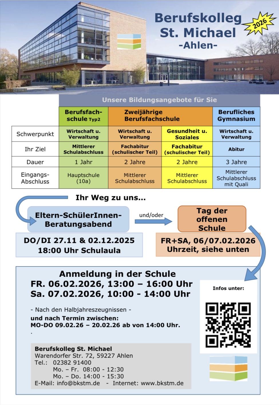 Komm neugierig vorbei, schau dich um und sprich mit uns. Wir freuen uns auf jede Schülerin und jeden Schüler. Unten findest Du den Ablauf und weiteren Termine.....
